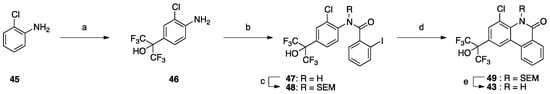 3.1.4. N-(2-Chloro-4-(1,1,1,3,3,3-hexafluoro-2-((2-(trimethylsilyl)ethoxy)methoxy)propan-2-yl)phenyl)-2-iodo-N-((2-(trimethylsilyl)ethoxy)methyl)benzamide (48)