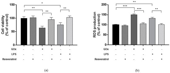 2.4. Resveratrol Ameliorates Viability and ROS Production in Cells under Oxidative and Inflammatory Conditions