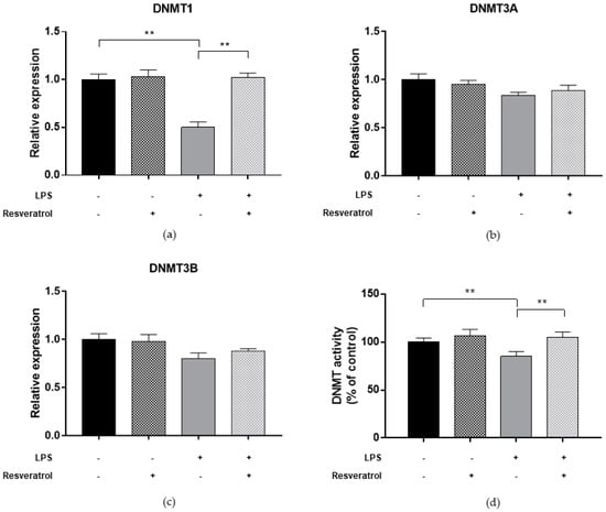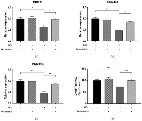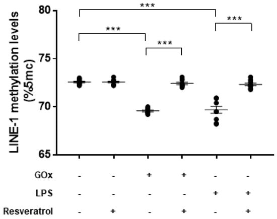 2.5. Resveratrol Restores DNMT and SIRT1 Functions and LINE-1 Methylation in Cells under Oxidative and Inflammatory Conditions