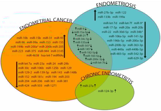 | miR-200b-3p | down | endometrium\plasma | [161,167,178] |