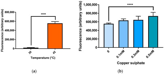 2.3. Increased mCherry Fluorescence in Cells Exposed to Heat Shock and Copper Sulphate