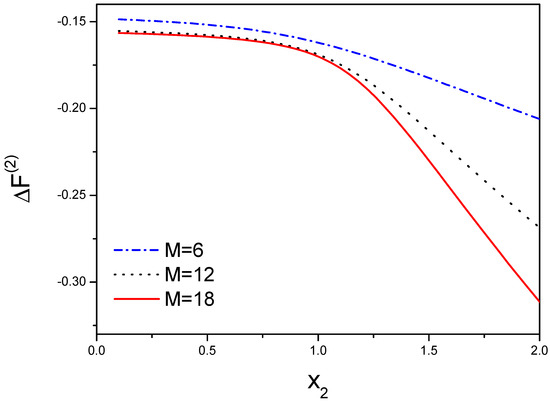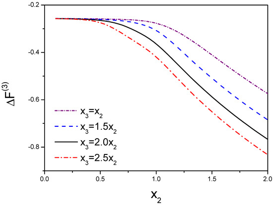In Figure 4, we take and . This figure demonstrates the free energy and the function of are a function of and . Due to , we choose a few of values for that are resulted from the range of from 1 to 3.