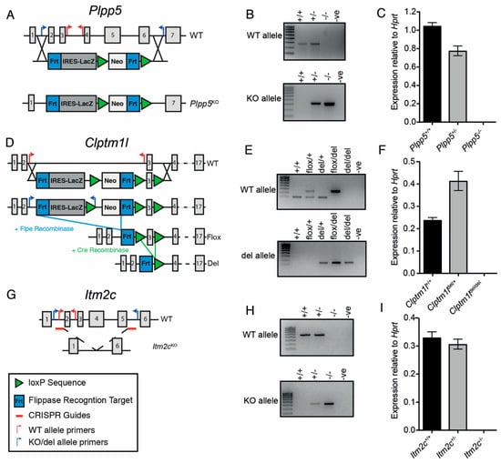 2.5. Generation of Plpp5, Clptm1l and Itm2c Knock-Out Mouse Models