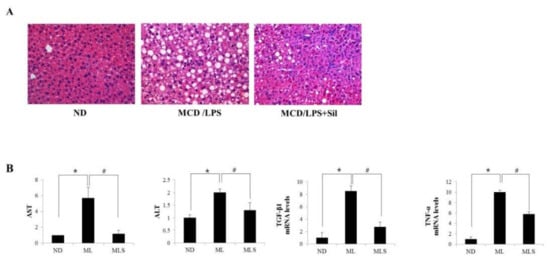 3.1. Effect of Silibinin on MCD Diet-Induced Steatohepatitis