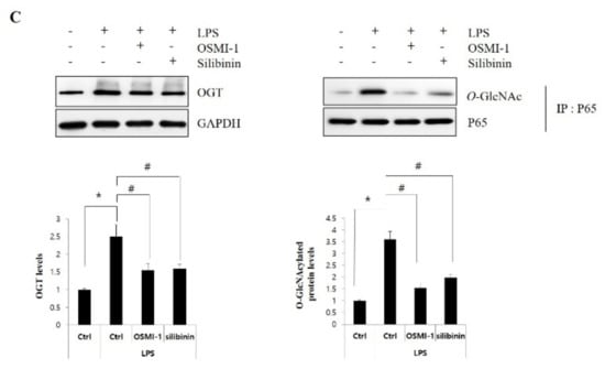 3.4. Silibinin Ameliorates Inflammation by Inhibiting NF-κB Signaling and Glcnacylation