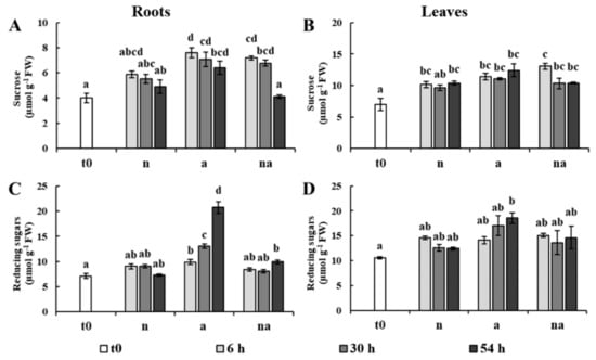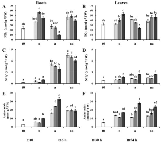 3.2. Determination of the Contents of Nitrate, Ammonium, Amino Acids, Sucrose and Reducing Sugars