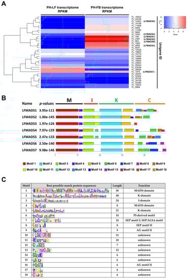 - Chen, M.K.; Lin, I.C.; Yang, C.H. Functional analysis of three lily (Lilium longiflorum) APETALA1-like MADS box genes in regulating floral transition and formation. Plant Cell Physiol. 2008, 49, 704–717. [Google Scholar] [CrossRef] [PubMed]