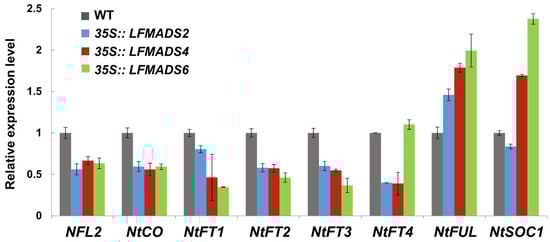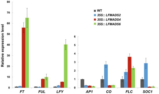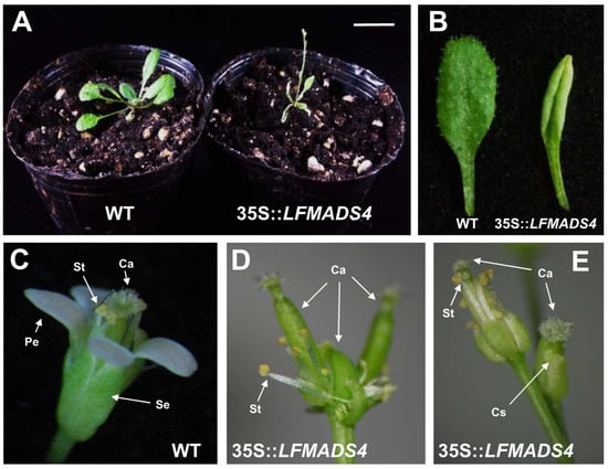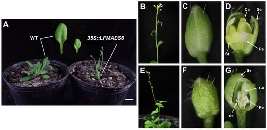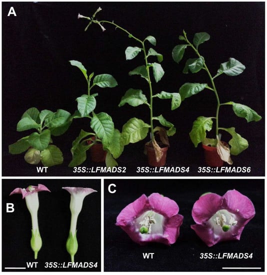 Liao, W.-Y.; Lin, L.-F.; Lin, M.-D.; Hsieh, S.-C.; Li, A.Y.-S.; Tsay, Y.-S.; Chou, M.-L. Overexpression of Lilium formosanum MADS-box (LFMADS) Causing Floral Defects While Promoting Flowering in Arabidopsis thaliana, Whereas Only Affecting Floral Transition Time in Nicotiana tabacum. Int. J. Mol. Sci. 2018, 19, 2217. https://doi.org/10.3390/ijms19082217