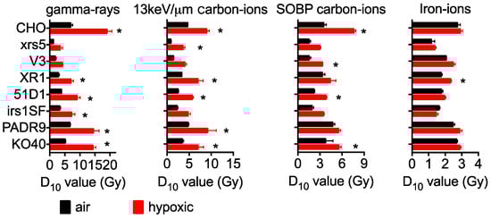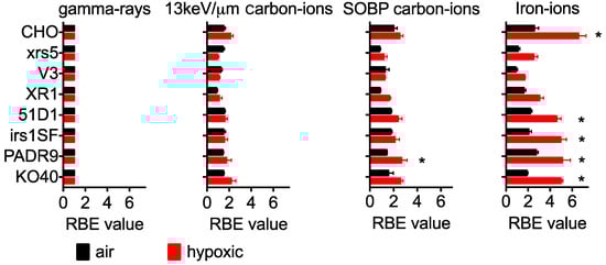 Cartwright, I.M.; Su, C.; Haskins, J.S.; Salinas, V.A.; Sunada, S.; Yu, H.; Uesaka, M.; Hirakawa, H.; Chen, D.J.; Fujimori, A.; et al. DNA Repair Deficient Chinese Hamster Ovary Cells Exhibiting Differential Sensitivity to Charged Particle Radiation under Aerobic and Hypoxic Conditions. Int. J. Mol. Sci. 2018, 19, 2228. https://doi.org/10.3390/ijms19082228
