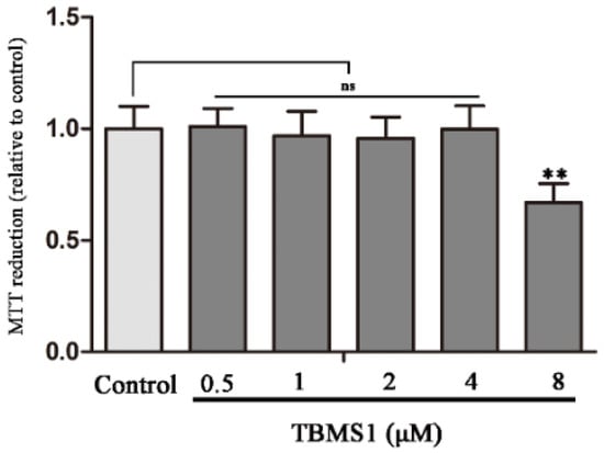 2.4. Effect of TBMS1 on the Viability of BV-2 Cells