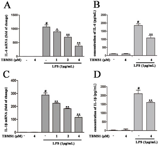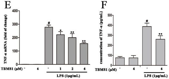 2.5. TBMS1 Inhibits the Production of Pro-Inflammatory Cytokines in LPS-Exposed BV-2 Cells