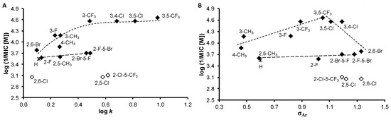 - Gonec, T.; Kos, J.; Zadrazilova, I.; Pesko, M.; Keltosova, S.; Tengler, J.; Bobal, P.; Kollar, P.; Cizek, A.; Kralova, K.; et al. Antimycobacterial and herbicidal activity of ring-substituted 1-hydroxynaphthalene-2-carboxanilides. Bioorg. Med. Chem. 2013, 21, 6531–6541. [Google Scholar] [CrossRef] [PubMed]