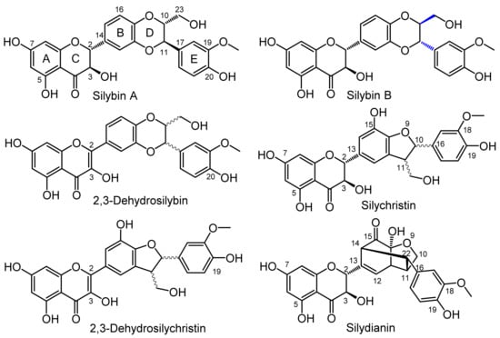 - Gažák, R.; Walterová, D.; Křen, V. Silybin and silymarin-new and emerging applications in medicine. Curr. Med. Chem. 2007, 14, 315–338. [Google Scholar] [CrossRef] [PubMed]