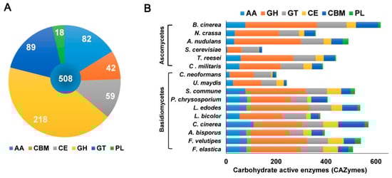 Chicago/Turabian StylePark, Young-Jin, Yong-Un Jeong, and Won-Sik Kong. 2018. "Genome Sequencing and Carbohydrate-Active Enzyme (CAZyme) Repertoire of the White Rot Fungus Flammulina elastica" International Journal of Molecular Sciences 19, no. 8: 2379. https://doi.org/10.3390/ijms19082379