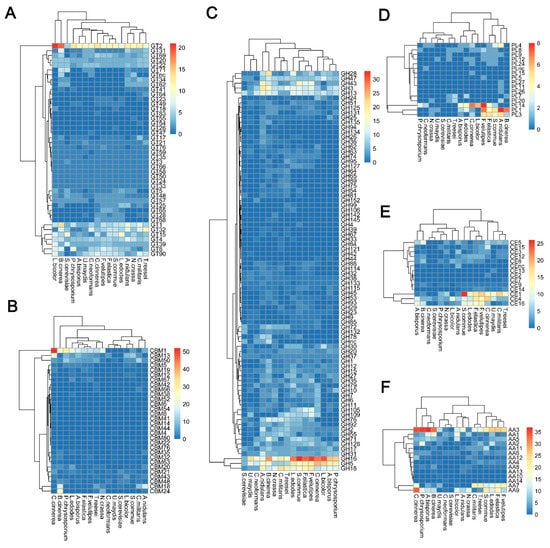- Finn, R.D.; Coggill, P.; Eberhardt, R.Y.; Eddy, S.R.; Mistry, J.; Mitchell, A.L.; Potter, S.C.; Punta, M.; Qureshi, M.; Sangrador-Vegas, A.; et al. The Pfam protein families database: Towards a more sustainable future. Nucleic Acids Res. 2016, 44, D279–D285. [Google Scholar] [CrossRef] [PubMed]