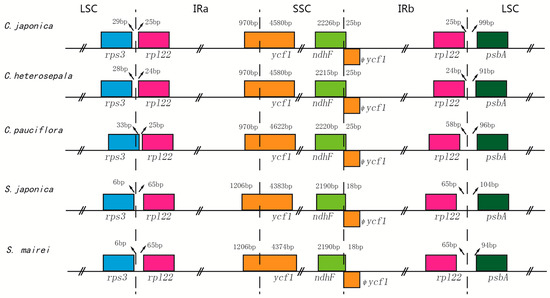 Comparison of LSC, IR and SSC junction positions among five Stemonaceae chloroplast genomes.