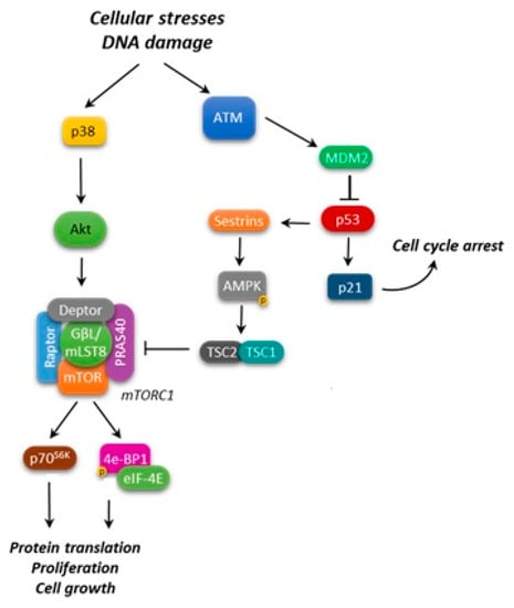 - Feng, Z.; Zhang, H.; Levine, A.J.; Jin, S. The coordinate regulation of the p53 and mTOR pathways in cells. Proc. Natl. Acad. Sci. USA 2005, 102, 8204–8209. [Google Scholar] [CrossRef] [PubMed]