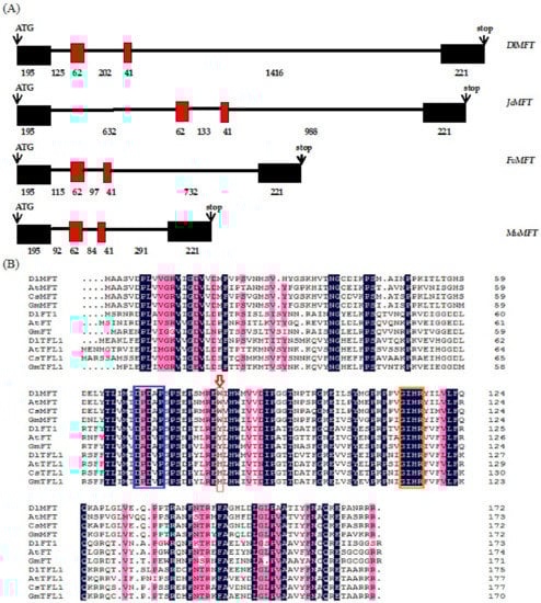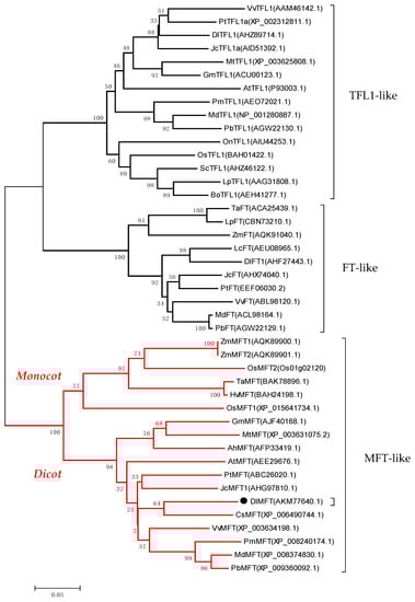 2.1. Isolation of DlMFT and Its Phylogenetic Analysis