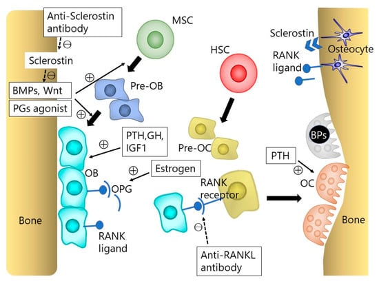 | Anti-sclerostin antibody | Inhibition of sclerostin which interferes BMP and Wnt signaling | Activation of bone formation | No | N/A | N/A |