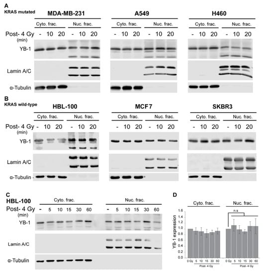 2.1. YB-1 Is Not Translocated to the Nucleus after Irradiation