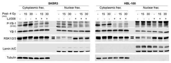 2.3. Targeting RSK Inhibits Radiation-Induced YB-1 Phosphorylation in Nuclear Fractions without Affecting YB-1 Nuclear Expression