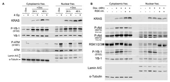 2.4. Conditional Expression of KRAS(G12V) Stimulates YB-1 Phosphorylation in Cytoplasmic and Nuclear Fractions without YB-1 Accumulation in the Nucleus