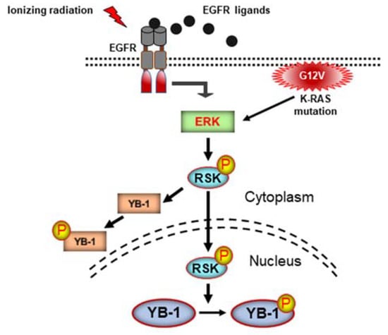 - Toulany, M.; Schickfluss, T.A.; Eicheler, W.; Kehlbach, R.; Schittek, B.; Rodemann, H.P. Impact of oncogenic K-RAS on YB-1 phosphorylation induced by ionizing radiation. Breast Cancer Res. 2011, 13, R28. [Google Scholar] [CrossRef] [PubMed]