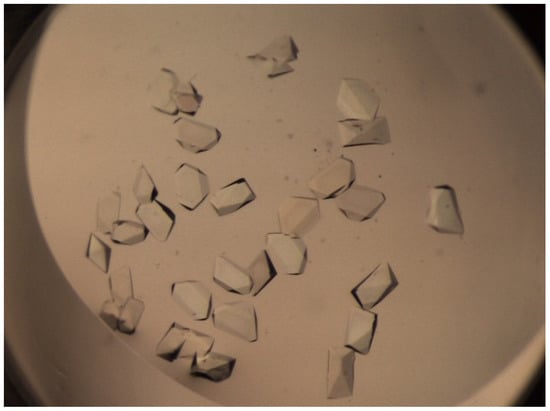 The CtPFD solutions at 15 or 7.5 mg/mL were mixed with 250 kinds of reservoir solutions (JBScreen Classic1-10, Jena Bioscience), and crystals were grown by the vapor diffusion method. The CtPFD crystals were obtained when the chaperone was mixed with 200 mM ammonium di-hydrogen phosphate (Figure 8). However, the best crystals diffracted to only 8 Å resolution, so a detailed structure of CtPFD could not be obtained (Supplementary Figure S3). The diffraction spots can be indexed in an orthorhombic cell with the parameters of a = 154.2, b = 128.9, and c = 78.09 Å. Assuming the presence of eight PFD hexameters in the unit cell, the Matthews coefficient and solvent content were calculated to be 2.0 Å3 Da−1 and 38.4%, respectively.