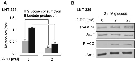 2.1. Effects of 2-DG on Glucose Consumption and AMP-Kinase Signaling in Human Glioblastoma Cells