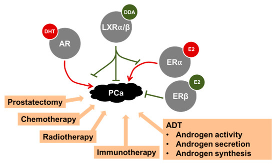 - Lee, J.H.; Gong, H.; Khadem, S.; Lu, Y.; Gao, X.; Li, S.; Zhang, J.; Xie, W. Androgen deprivation by activating the liver X receptor. Endocrinology 2008, 149, 3778–3788. [Google Scholar] [CrossRef] [PubMed]
