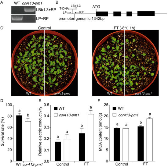 - Artus, N.N.; Uemura, M.; Steponkus, P.L.; Gilmour, S.J.; Lin, C.; Thomashow, M.F. Constitutive expression of the cold-regulated Arabidopsis thaliana COR15a gene affects both chloroplast and protoplast freezing tolerance. Proc. Natl. Acad. Sci. USA 1996, 93, 13404–13409. [Google Scholar] [CrossRef] [PubMed]