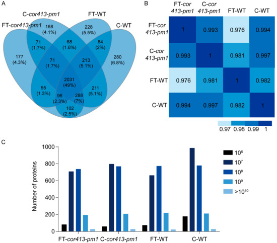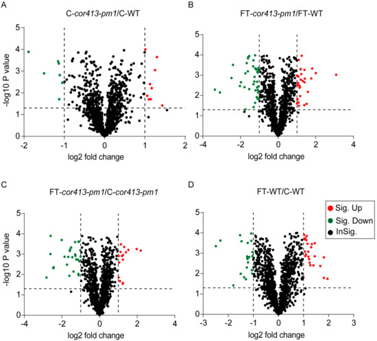 2.2. Identification of Differentially Abundant Proteins (DAPs) in Seedling Shoots of cor413-pm1 and WT