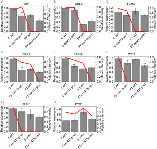 | FT-cor413-pm1 vs. C-cor413-pm1 | 407 (e) | 539 (g) | 1288 | 2234 |