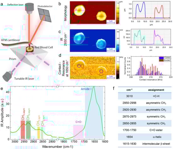 - Perez-Guaita, D.; Kochan, K.; Batty, M.; Doerig, C.; Garcia-Bustos, J.; Espinoza, S.; McNaughton, D.; Heraud, P.; Wood, B.R. Multispectral atomic force microscopy-infrared nano-imaging of malaria infected red blood cells. Anal. Chem. 2018, 90, 3140–3148. [Google Scholar] [CrossRef] [PubMed]