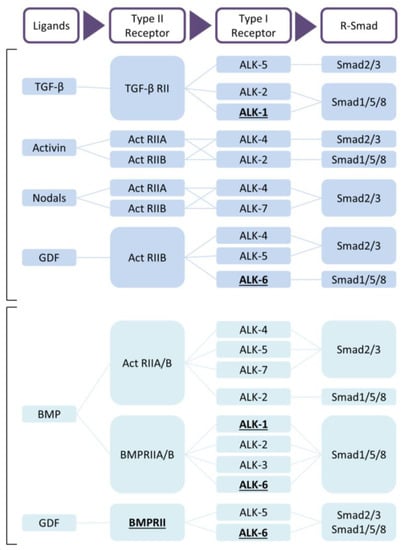 - Goumans, M.J.; Zwijsen, A.; Ten Dijke, P.; Bailly, S. Bone morphogenetic proteins in vascular homeostasis and disease. Cold Spring Harb. Perspect. Biol. 2018, 10, a031989. [Google Scholar] [CrossRef] [PubMed]