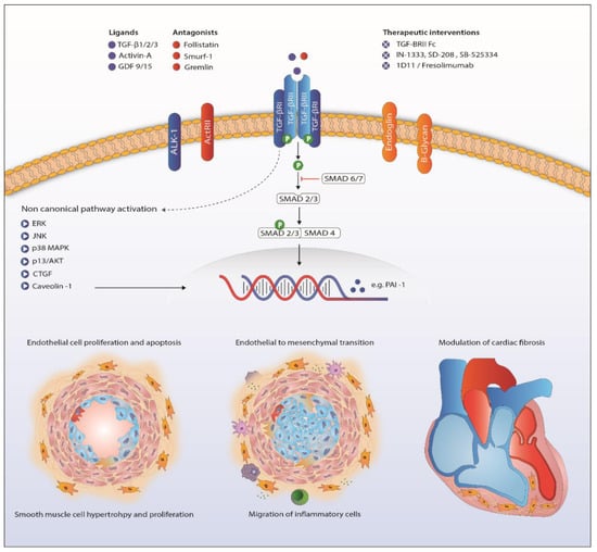 - Goumans, M.J.; Ten Dijke, P. TGF-β signaling in control of cardiovascular function. Cold Spring Harb Perspect. Biol. 2018, 10, a022210. [Google Scholar] [CrossRef] [PubMed]