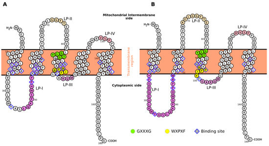 | Conserved Residues | LP-I: L37, P40, P44, P45, TM-II: W53, L56, G61, TM-III: N92, W95, F99, F100, TM-V: L136, P139, Y140, W143, A147, L150, N151 | ||||