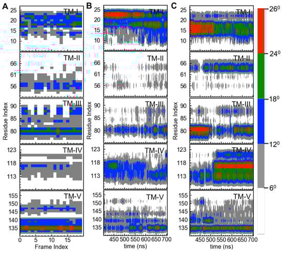 - Dahl, A.C.; Chavent, M.; Sansom, M.S. Bendix: Intuitive helix geometry analysis and abstraction. Bioinformatics 2012, 28, 2193–2194. [Google Scholar] [CrossRef] [PubMed]