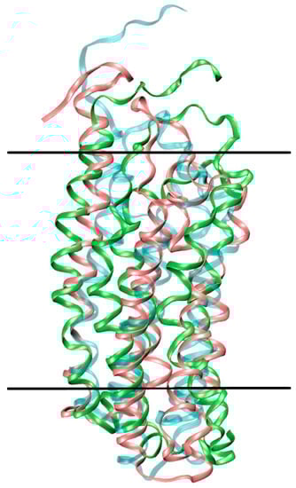 - Lomize, M.A.; Pogozheva, I.D.; Joo, H.; Mosberg, H.I.; Lomize, A.L. OPM database and PPM web server: Resources for positioning of proteins in membranes. Nucleic Acids Res. 2012, 40, D370–D376. [Google Scholar] [CrossRef] [PubMed]