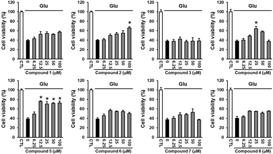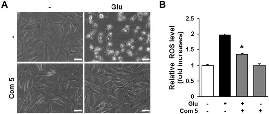 2.4. The Effects of Compound 5 on Glutamate-Induced ROS Accumulation