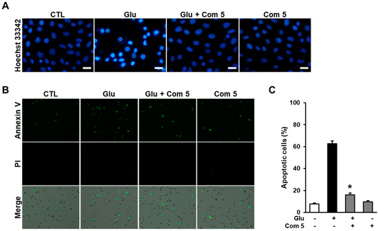 2.5. The Effects of Compound 5 on Glutamate-Induced Damage in HT22 Cells