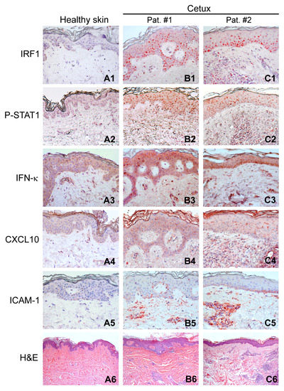 - Lulli, D.; Carbone, M.L.; Pastore, S. Epidermal growth factor receptor inhibitors trigger a type I interferon response in human skin. Oncotarget 2016, 7, 47777–47793. [Google Scholar] [CrossRef] [PubMed]
