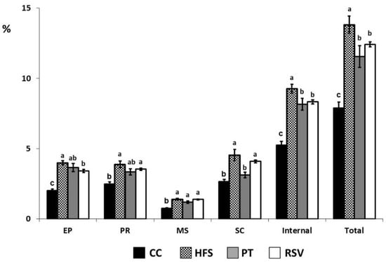 - Livak, K.J.; Schmittgen, T.D. Analysis of relative gene expression data using real-time quantitative PCR and the 2(-Delta Delta C(T)) Method. Methods 2001, 25, 402–408. [Google Scholar] [CrossRef] [PubMed]