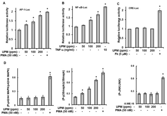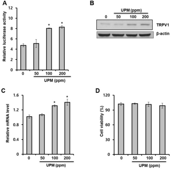 2.3. UPM-induced Expression of TRPV 1 Is Mediated through Activation of p38 MAPK and NF-κB