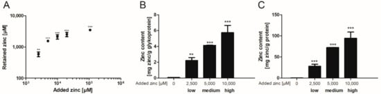 4.10. Total Cellular Zinc Content Measured by Flame Atomic Absorption Spectrometry (FAAS)