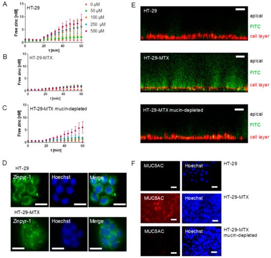 2.4. Comparison of Zinc Resorption in Different Intestinal Cell Culture Models: The Role of Mucins