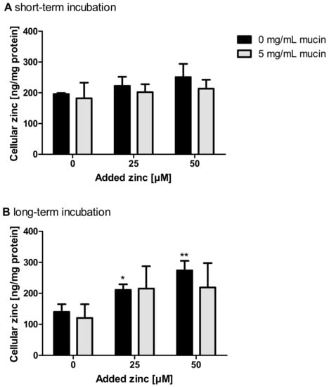 2.3. Impact of Extracellular Mucins on Zinc Uptake into Enterocytes
