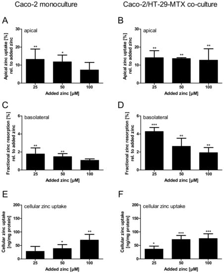 - Maares, M.; Duman, A.; Keil, C.; Schwerdtle, T.; Haase, H. The impact of apical and basolateral albumin on intestinal zinc resorption in the Caco-2/HT-29-MTX co-culture model. Metallomics 2018, 10, 979–991. [Google Scholar] [CrossRef] [PubMed]