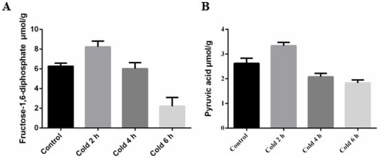 2.2. Acute Cold Stress Induced Changes to Fructose-1,6-diphosphate (FDP) and Pyruvic Acid (PA) in the Liver