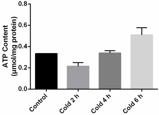 2.3. Adenosine Triphosphate (ATP) Levels in the Liver Were Affected by Acute Cold Stress